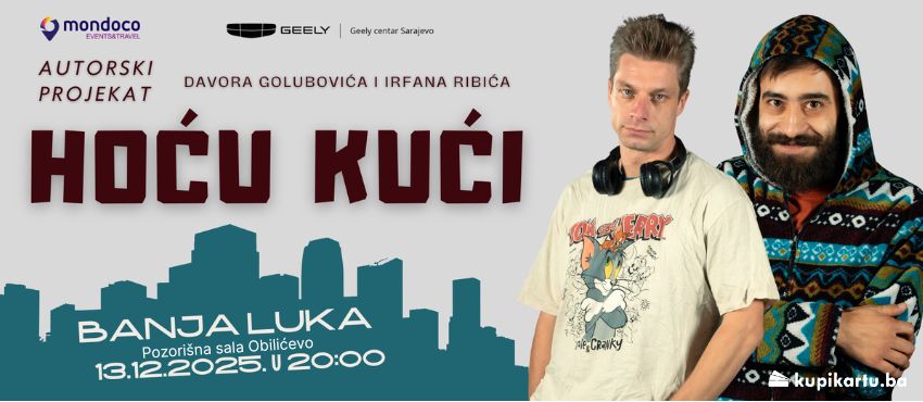 By clicking on the Buy a Ticket button you begin the process of purchasing tickets for HOĆU KUĆI - BANJA LUKA on 13.12.2025. 20:00 .