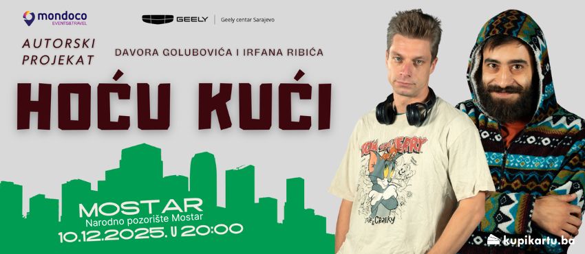 By clicking on the Buy a Ticket button you begin the process of purchasing tickets for HOĆU KUĆI - MOSTAR on 10.12.2025. 20:00 .