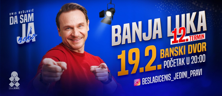 By clicking on the Buy a Ticket button you begin the process of purchasing tickets for ENIS BEŠLAGIĆ - DA SAM JA NEKO :: BANJA LUKA 19/02 on 19.02.2026. 20:00 .