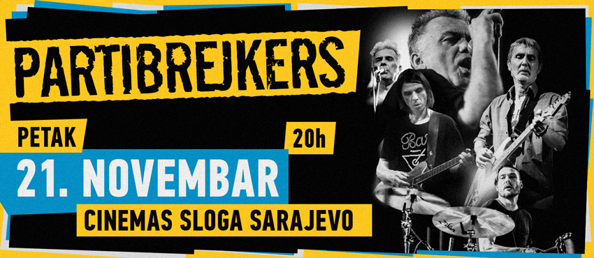 Jedan od najutjecajnijih i najautentičnijih rock bendova s ovih prostora, Partibrejkers, na čelu s karizmatičnim Zoranom Kostićem Canetom, više od četiri decenije je sinonim za beskompromisni rock'n'roll. Još od dana Radničke kontrole i kultnog kompilacijskog albuma Artistička radna akcija, pa do prvih velikih uspjeha s hitovima poput "Ulični hodač", "Ona živi na brdu", "Hiljadu godina" i "Kreni prema meni", Partibrejkers je bend koji je promijenio lice domaće rock scene. Nakon više od godinu dana, ovaj kultni bend dolazi u Sarajevo, a koncert u Slogi će biti prilika da publika ponovno osjeti njihovu sirovu energiju i ritam, u klupskom izdanju.