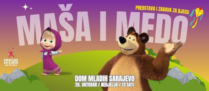 Dragi roditelji i mališani, spremite se za nezaboravan doživljaj jer u nedjelju, 26. oktobra u 13:00 sati, Dom mladih u Sarajevu postaje mjesto čiste radosti i smijeha uz hit predstavu i zabavu za djecu „Maša i medo“!