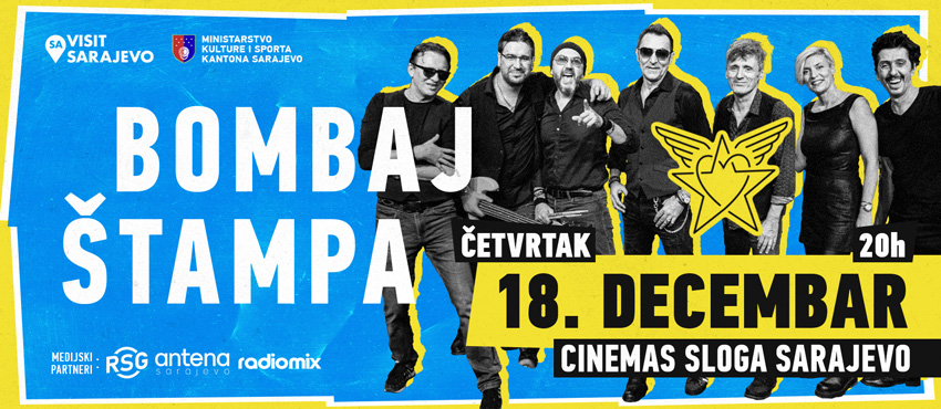 Kultna grupa Bombaj Štampa nastupiće u četvrtak 18. decembra u Cinemas Sloga u sklopu trećeg izdanja Demo Stage Festivala. Prije njih nastupiće 3 od 6 bendova koji ostvare prolaz u dvije finalne večeri. Nakon njihovih nastupa koji će trajati po 30 minuta, u revijalnom dijelu, Bombaj Štampa će održati cjelovečernji koncert u trajanju od sat i 40 minuta. U sklopu ovog koncerta Bombaj Štampa će promovisati i svoj novi, dugoočekivani album.Ulaznice se mogu kupiti putem sistema www.kupikartu.ba ili direktno na biletarnicama BKC i plato Skenderija. Cijena ulaznica je 20 KM, a program počinje u 20h. Vidimo se!!!