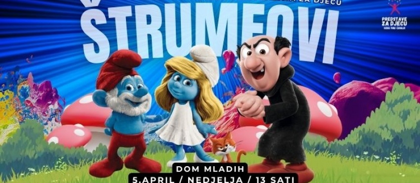 očekuje vesela, šarena i interaktivna predstava „Štrumfovi“, ispunjena