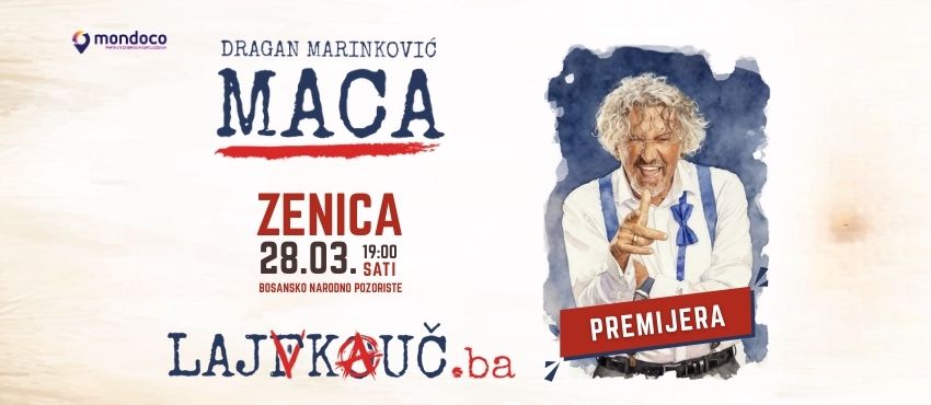 Klikom na link Kupi kartu započinjete proces kupovine karata za DRAGAN MARINKOVIĆ MACA - LAJFKOUČ.BA - ZENICA 28/03 u terminu 28.03.2026. u 19:00 .
